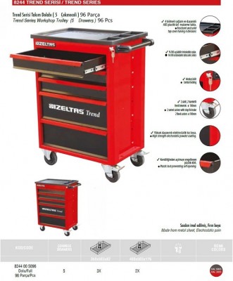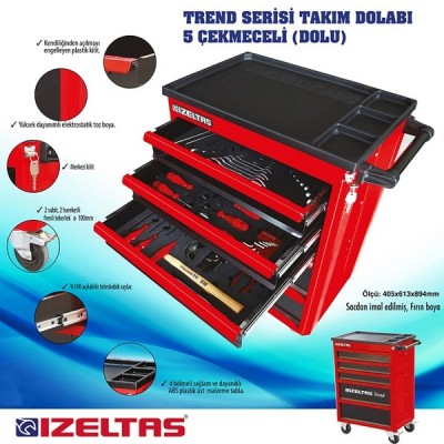 İzeltaş Trend serisi 5 çekmeceli dolu takım arabası 96 parçadır. 3 çekmecesi doludur.